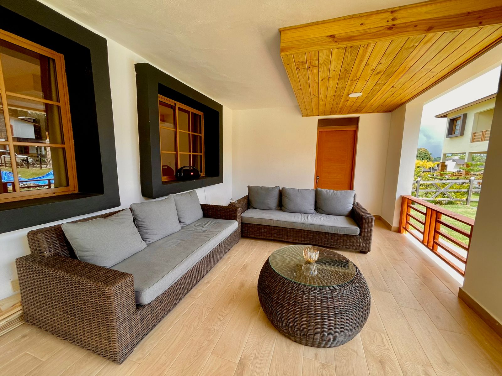 Entdecken Sie diese wunderschöne Villa in einem exklusiven, geschlossenen Wohnresort in Jarabacoa – eingebettet in eine beeindruckende Berglandschaft voller Natur, Ruhe und spektakulärer Ausblicke. Hier verbinden sich Privatsphäre, Sicherheit und stilvolles Wohnen zu einem besonderen Lebensgefühl. Die großzügig gestalteten Räume wurden mit viel Liebe zum Detail geplant und schaffen eine perfekte Balance zwischen Komfort, Entspannung und Lebensqualität. Ob als dauerhafter Wohnsitz, Ferienvilla oder wertstabile Investition – diese Immobilie bietet ideale Voraussetzungen für ein entspanntes Leben fern vom Trubel der Stadt. Aufteilung Erdgeschoss • Wohnzimmer • Küche mit Frühstücksbereich • Überdachte Terrasse • Esszimmer • Gäste-WC • Schlafzimmer • Gartenbereich • Kamin Obergeschoss • Hauptschlafzimmer mit Bad & Balkon • 2 Schlafzimmer mit jeweils eigenem Bad • Wohn-/Aufenthaltsbereich • Offene Terrasse Die Villa wird komplett möbliert verkauft. Sämtliche Möbel wurden sorgfältig ausgewählt und importiert und vereinen Design, Komfort und Qualität. Einziehen und sofort genießen – ohne zusätzliche Investitionen. Möbliert: Ja Geschlossene Wohnanlage: Ja |