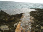 En dirección al mar hay un acceso para llegar a embarcaciones. Llegando hasta aquí por caminos terminando en una terraza al lado del mar.